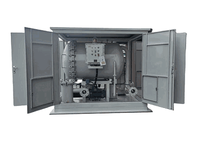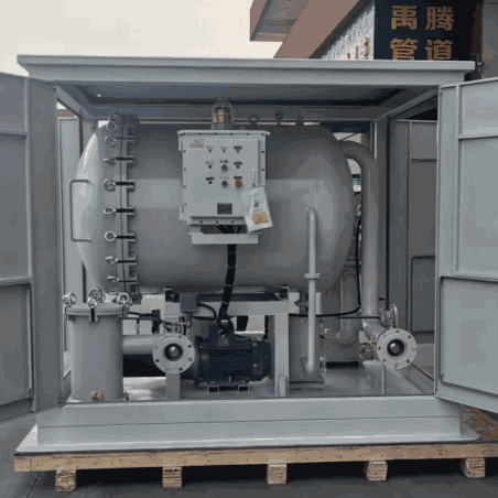 油液在系統(tǒng)中首先進(jìn)入粗濾系統(tǒng),經(jīng)處理,大顆粒的雜質(zhì)被去除,以保護(hù)油泵不被損壞,后油液被泵入二級(jí)過濾系統(tǒng),經(jīng)處理進(jìn)入聚結(jié)室內(nèi)的聚結(jié)濾芯,由于聚結(jié)濾芯材料獨(dú)特的極性分子結(jié)構(gòu)的作用,油液中的游離水以及乳化水在通過濾芯后聚結(jié)成為較大的水滴,在重力作用下下沉至儲(chǔ)水罐內(nèi)。微細(xì)水分子在慣性作用下隨同油液至分離濾芯處。分離濾芯由特殊的疏水材料制成,當(dāng)油液通過時(shí),微細(xì)水分子被擋在濾芯的外面,經(jīng)過相互聚集,因重力沉降到聚結(jié)室下部的儲(chǔ)水罐中排出。油液經(jīng)過脫水處理后,進(jìn)入精濾系統(tǒng)以保證進(jìn)入用戶油箱的油液清潔度達(dá)到設(shè)計(jì)標(biāo)準(zhǔn)。